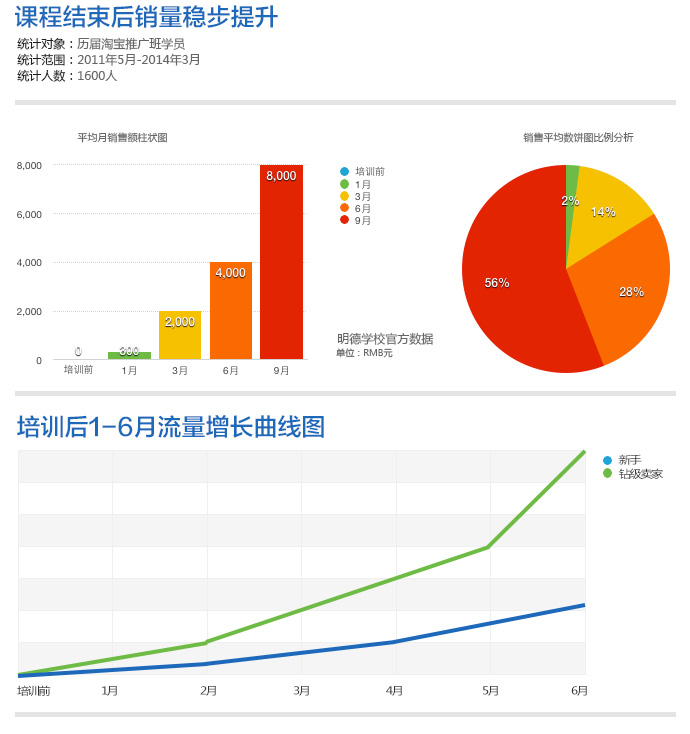 俗话说,开店容易开好难。一般来说,通过自学,在一定时间内建起自己的淘宝网店是比较简单的。但这对于生意来说,只是刚刚开始,最难的地方不是搭建,而是后期的运作。明德学校浙江淘宝网店培训的培训课程主要针对网店的后期运作,而并非简单的前期搭建进行引导。在教学上,我们采用一对一模式,针对不同学生的不同行业、年龄等特点,在教学内容上进行相应调整,以实现教学的真正精准化。